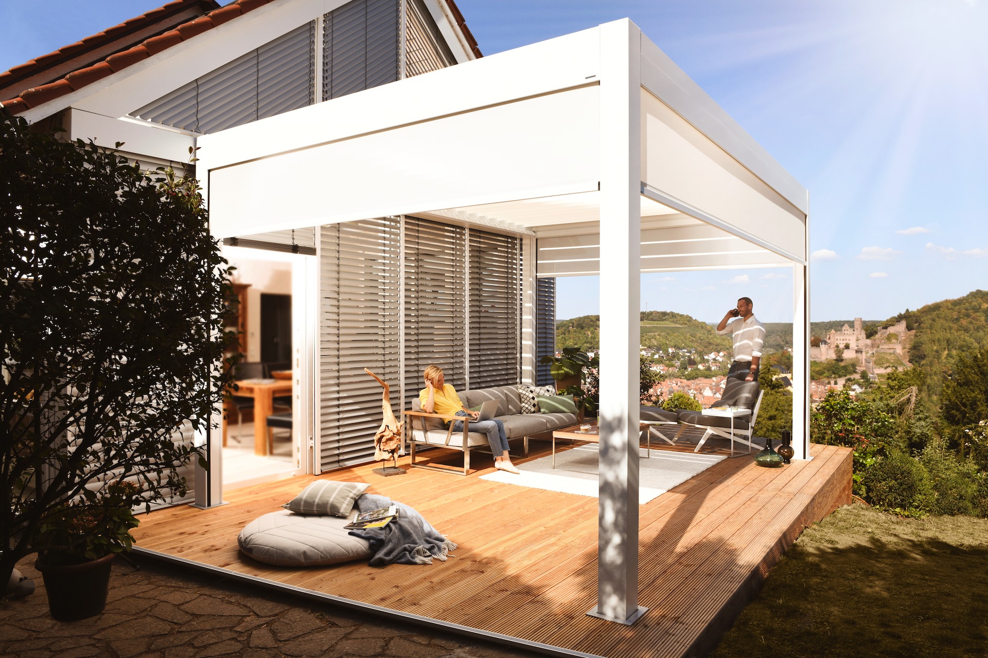 Mit einem Lamellendach gewinnen Sie ein stabiles Überdachungssystem, das Schatten spendet, Sie vor Wind und Regen abschirmt und sich zugleich unkompliziert Bedienen lässt.